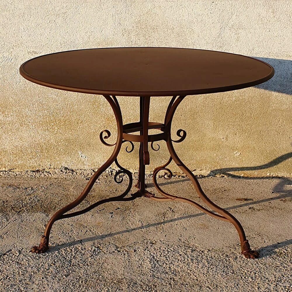 Die Vorlagen für diesen Gartentisch im antiken Design stammen aus dem 19. Jahrhundert. Zu dieser Zeit fand man diese Outdoor-Tische in vielen französischen Gärten und Parks. Unser nostalgischer Tisch wird aus hochwertigem Schmiedeeisen in Handarbeit in einer traditionsreichen Kunstschmiede rostfrei, stabil und witterungsbeständig gefertigt. Ob grün, rot oder klassisch weiß, der farblichen Gestaltung sind innerhalb der RAL Farbpalette keine Grenzen gesetzt. Um das antike Design zu unterstreichen, können die Farben im antiken Stil gewählt werden. In unserem Sortiment finden Sie ebenso passende Gartenstühle und Gartentische.