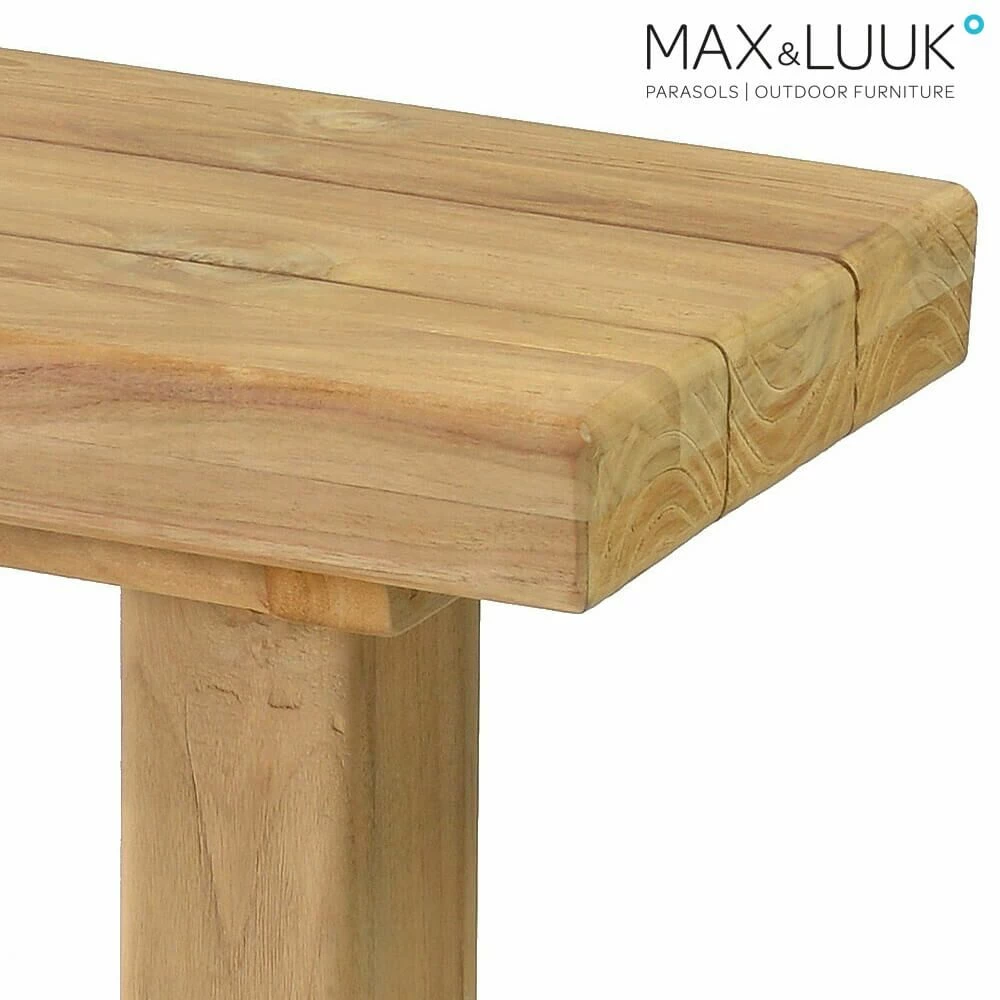 Die schlichte Gartenbank BRUCE ist Teil der modernen Gartenmöbel Kollektion des niederländischen Herstellers Max&Luuk. In Kombination mit den Gartentischen der gleichnamigen Serie lassen sich schöne Sitzgruppen zusammenstellen. Die Sitzbank ohne Lehne wird aus Teakholz gefertigt und ist witterungsbeständig sowie langlebig.