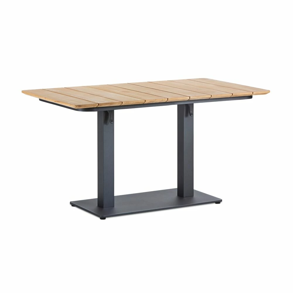 Unsere hochwertigen Gartenmöbel zeichnen sich durch eine hohe Robustheit gegenüber Witterung aus. Egal ob auf dem Balkon, auf der Terrasse oder im Garten platziert, besticht die Sitzgruppe durch ein elegantes Design. Die Gestelle sind aus Aluminium. Die ergonomische Sitzfläche wird aus einem Outdoor-Stoff gefertigt, welcher sich durch eine hohe Strapazierfähigkeit und Witterungsbeständigkeit auszeichnet. Als Polsertung wird ein wasseraufnahmeresistenter Fast-Dry-Foam verwendet. Die Rückenlehne ist 44 cm hoch. Der Stuhl wird montiert geliefert. Der Gartentisch hat eine abklappbare Teakholzplatte. Die Lieferung erfolgt zerlegt mit Montageanleitung.
