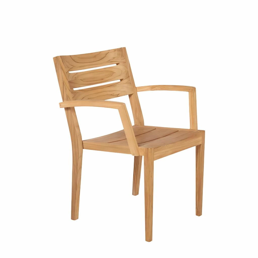 Dieser Stapelstuhl aus Teakholz überzeugt durch sein schlichtes und trotzdem elegantes Design. Der Stuhl für den Garten wird aus Teakholz von nachhaltig bewirtschafteten Plantagen hergestellt und zeichnet sich durch Stabilität und Langlebigkeit aus. Der Holzstuhl lässt sich wunderbar mit dem gleichnamigen Gartentsich ELLA auf Gartentraum kombinieren.
