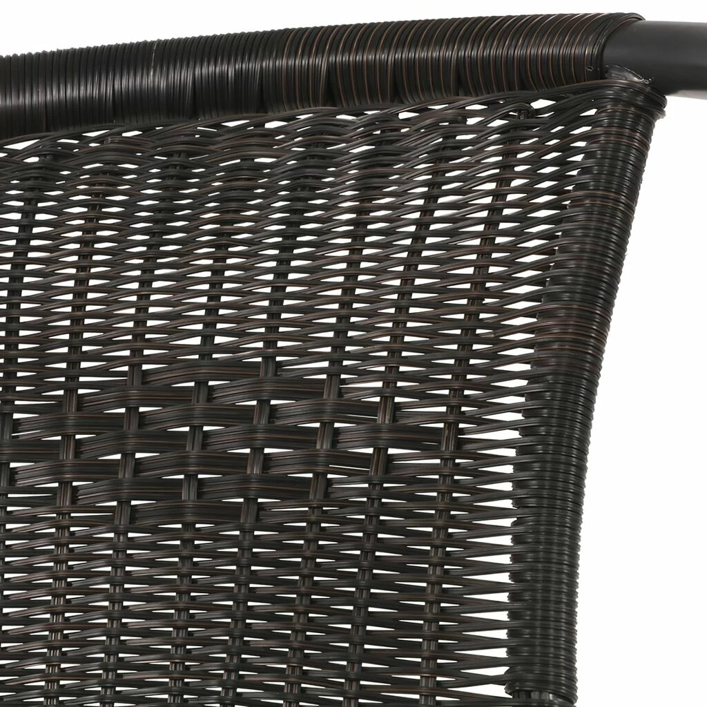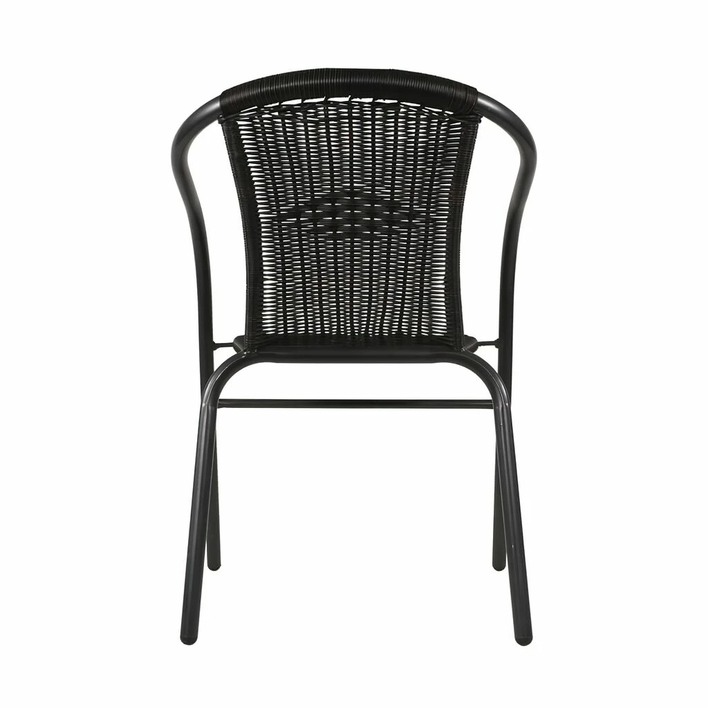 Dieser Gartenstuhl wird unter ständiger Qualitätskontrolle aus einem schwarzen Kunststoffgeflecht und anthrazitfarbenem Metall gefertigt. Das Outdoor-Möbelstück sollte mittels Abdeckhaube vor Witterung geschützt werden. Zur Reinigung sind Wasser und ein Schwamm ausreichend. Von säurehaltigen Reinigungsmittel wird abgeraten. Diese können die Oberfläche schädigen und zu einem Verlust der Wetterbeständigkeit führen.