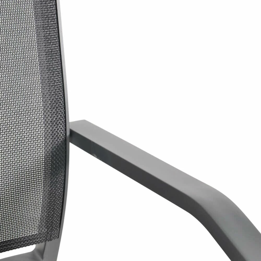 Dieser robuste Gartenstuhl wird unter ständiger Qualitätskontrolle aus Aluminium gegossen und erhält eine farbige Pulverbeschichtung. Die Sitzfläche wird aus Textylen gefertigt, einem strapazierfähigen und robusten Kunststoff. Das Outdoor-Möbelstück ist robust und wetterfest. Zur Reinigung sind Wasser und ein Schwamm ausreichend. Von säurehaltigen Reinigungsmittel wird abgeraten. Diese können die Oberfläche schädigen und zu einem Verlust der Wetterbeständigkeit führen.