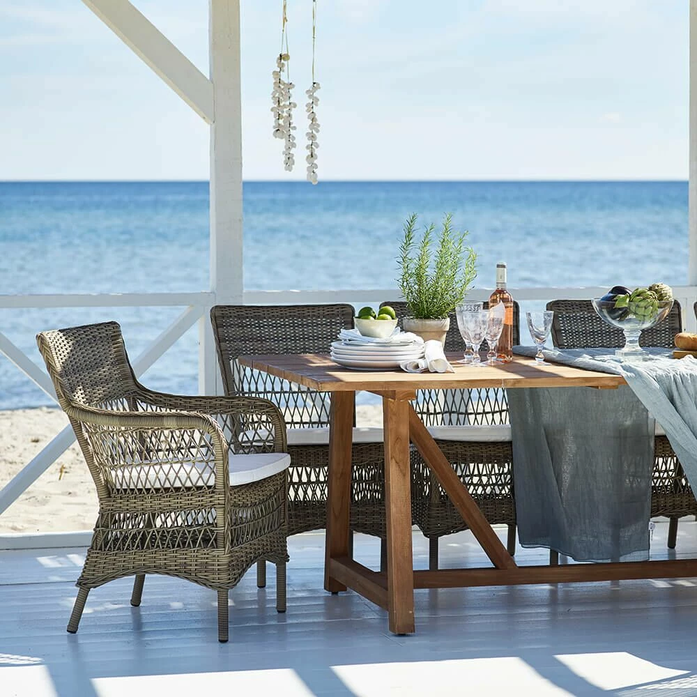 Mit einer Leidenschaft für Rattan, Handwerkskunst und Nachhaltigkeit überzeugt der Hersteller international. Möbel zu fertigen, die jahrzehntelange Begleiter werden und deren Design Ästhetik und Nutzen vereint, ist das Ziel des Traditionsunternehmens. Die Möbelstücke werden unter Berücksichtigung der Umwelt und des menschlichen Wohlbefindens in Indonesien hergestellt und sind dementsprechend zertifiziert. Viele Designs wurden von namenhaften Künstlern aufgegriffen und werden durch die Fertigung aus wetterfesten Materialien neu interpretiert. Handgebogene Aluminiumrahmen werden mit der Kunstfaser Art Fibre in Handarbeit umflochten. Alu Rattan ist pulverbeschichtetes Aluminium, welches stoß- und kratzfest ist. Die Kunstfaser Art Fibre ist eine Faser aus gefärbten und strapazierfähigen Polyethylen. Da sie temperatur- und UV-beständig ist, hält die Kunstfaser jedem Klima stand. Die Struktur dieses Polyrattans ist auf der einen Seite sehr stark und kann über Jahre hinweg ihre Form behalten, auf der anderen Seite ist sie sehr flexibel und bietet einen angenehmen Sitzkomfort. Alu Rattan und Art Fibre sind beide sehr pflegeleicht und lassen sich mit Wasser und einer milden Seife reinigen.