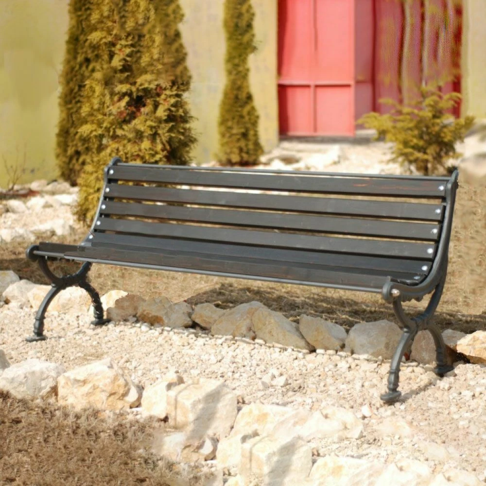 Die schlichte Gartenbank aus Holz und Metall ist eine langlebige sowie wetterfeste Ergänzung zur Stadtgestaltung oder für den heimischen Garten. Die Lieferung der Sitzgelegenheit erfolgte in mehreren Elementen. Farblich kann das Möbelstück in verschiedenen Farben der RAL Palette nach Ihren individuellen Vorstellungen gefertigt werden. Wenden Sie sich hierzu gerne an unseren Kunndenservice und wir erstellen Ihnen ein Angebot.