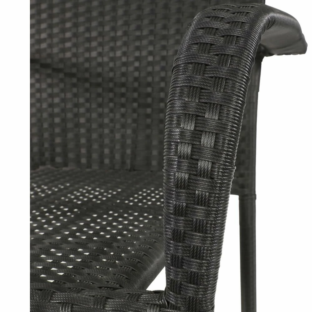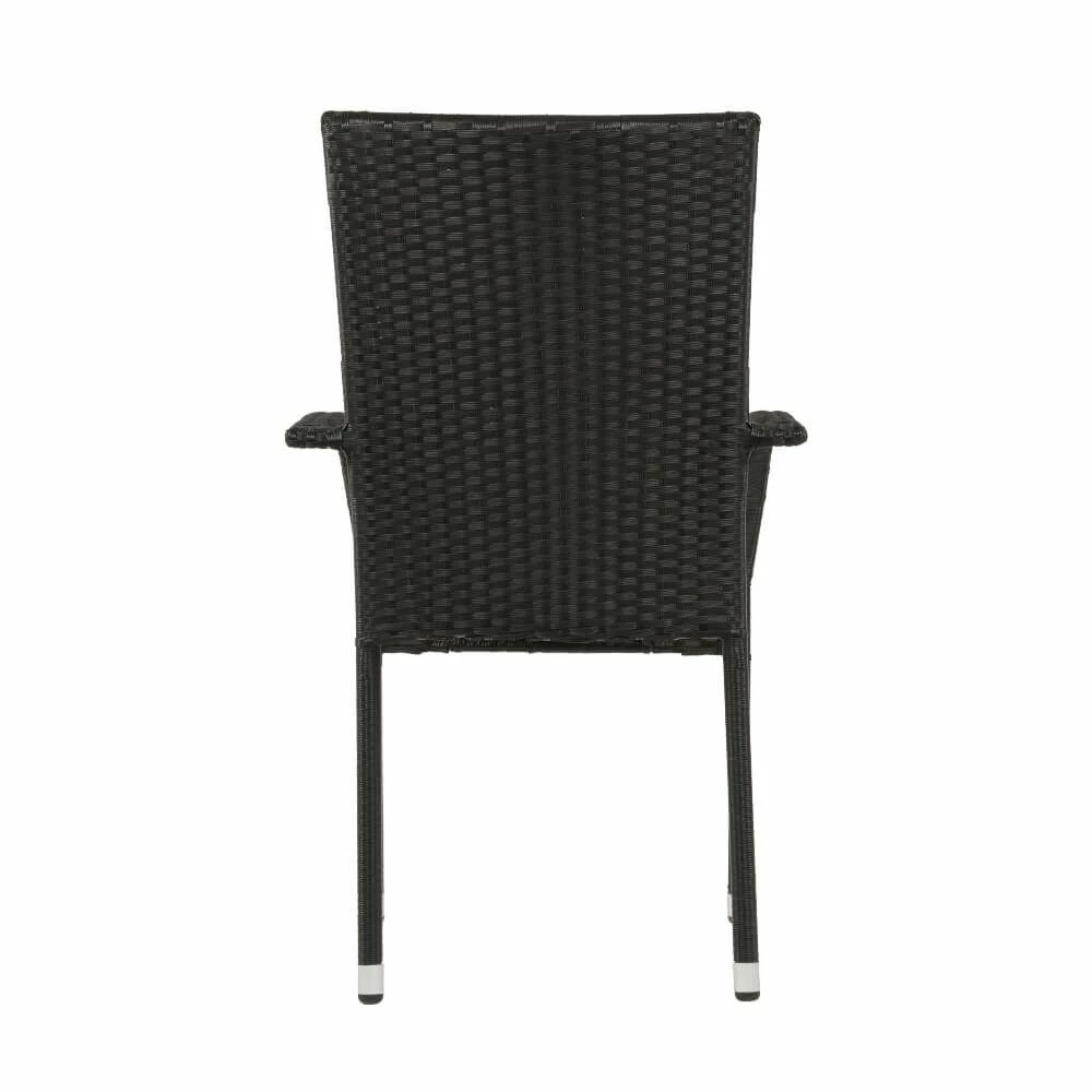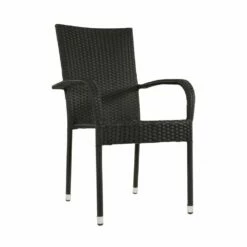 Dieser Gartenstuhl wird unter ständiger Qualitätskontrolle aus einem schwarzen Kunststoffgeflecht und verzinktem Eisen gefertigt. Das Outdoor-Möbelstück ist zur ganzjährigen Aufstellung im Außenbereich geeigne. Zur Reinigung sind Wasser und ein Schwamm ausreichend. Von säurehaltigen Reinigungsmittel wird abgeraten. Diese können die Oberfläche schädigen und zu einem Verlust der Wetterbeständigkeit führen.