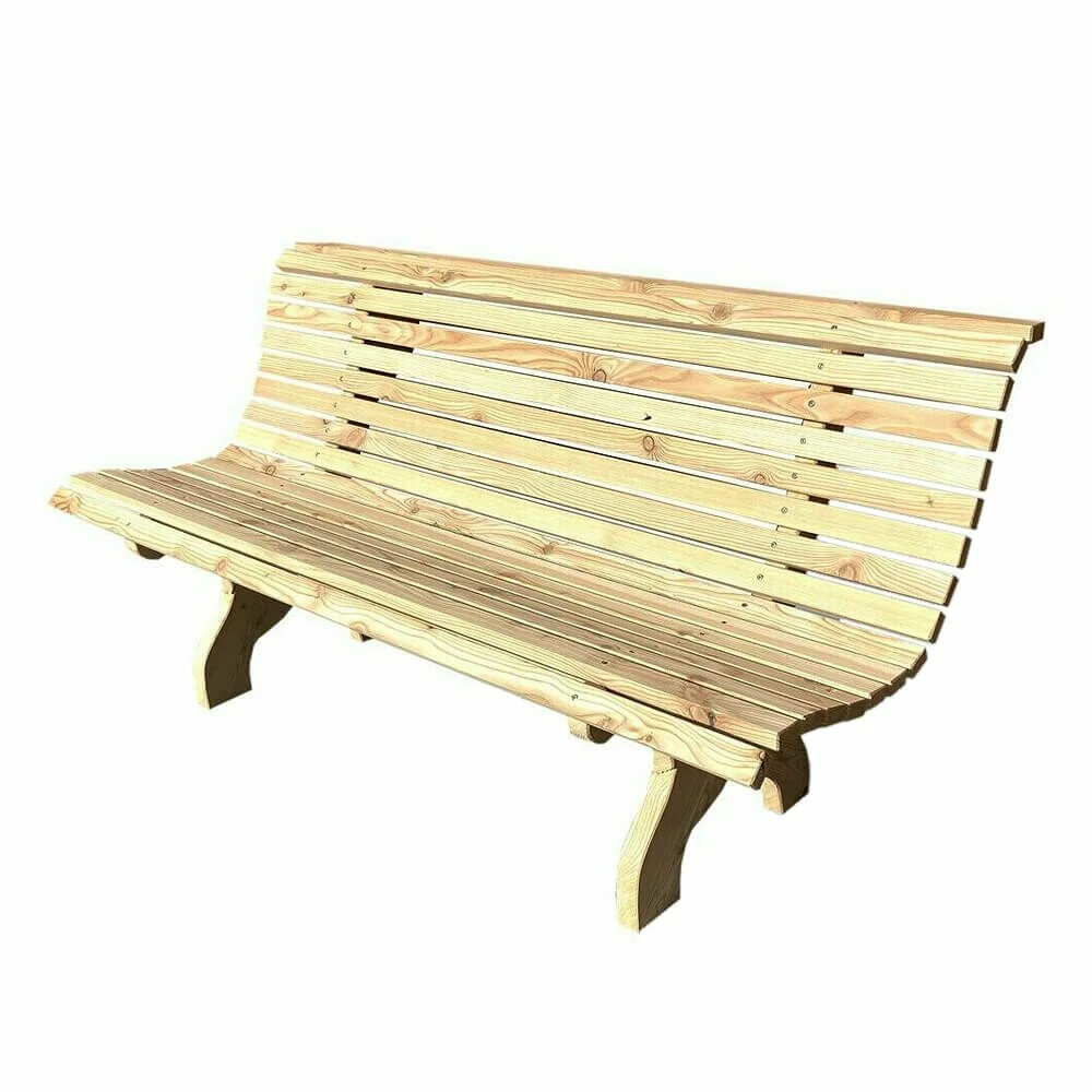 Die Gartenbank ist im traditionellen Handwerk gefertigt und wird als Komplettset, vormontiert geliefert. Jede Bank ist ein Unikat, welches aufgrund der natürlichen Holzmuster farblich und strukturell leicht abweichen kann. Es handelt sich um eine Sonderanfertigung. Das Holz ist beständig gegenüber Witterung und besteht aus verleimten Verbundplatten. Neben den abgebildeten Größen sind individuelle Änderungen auf Anfrage möglich. Gern erstellen wir Ihnen auch ein unverbindliches Angebot für eine Lieferung in Einzelteilen.