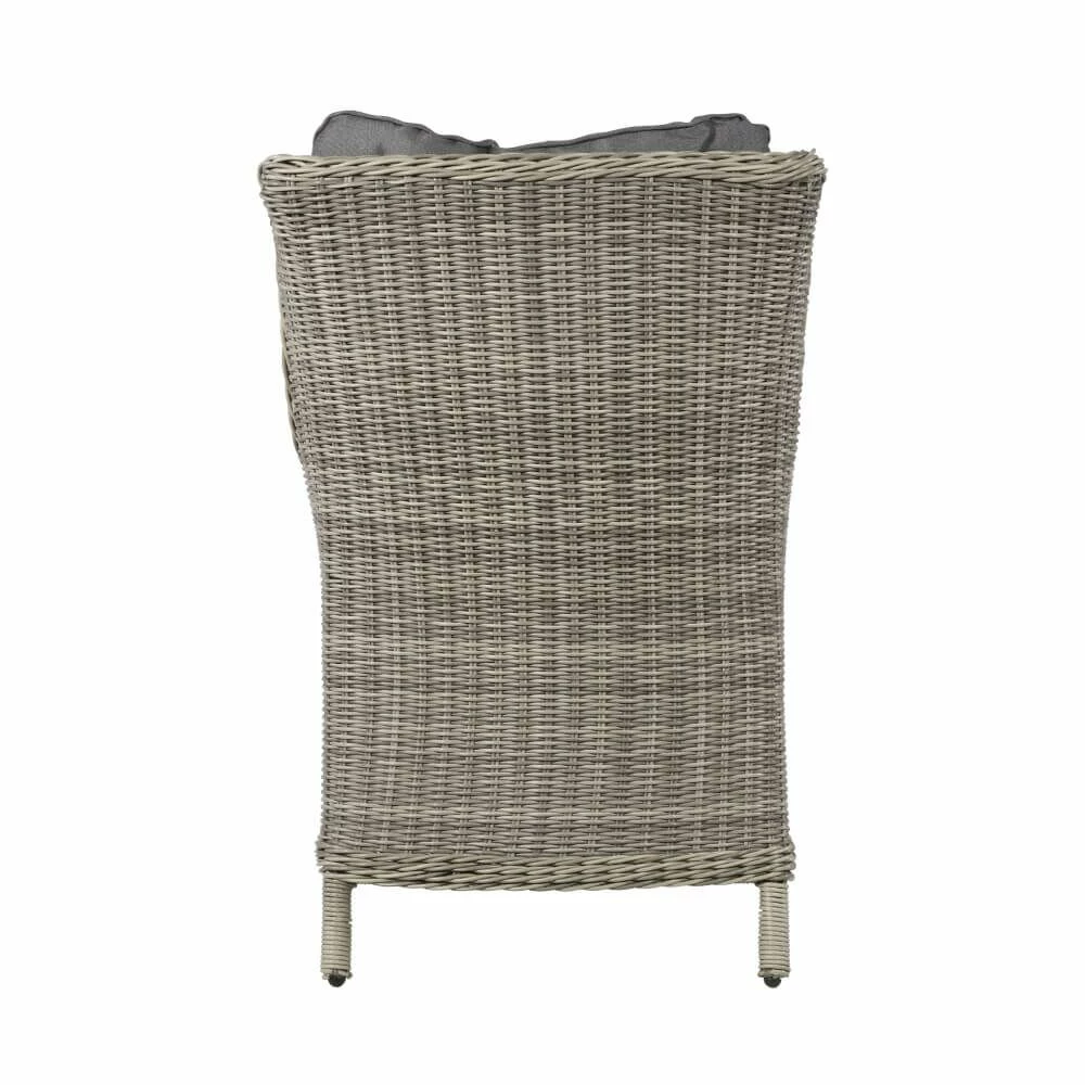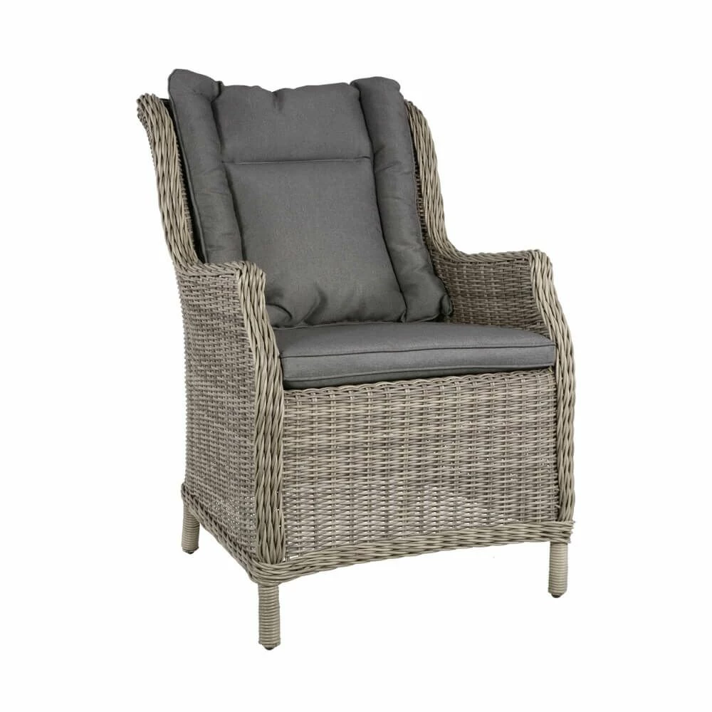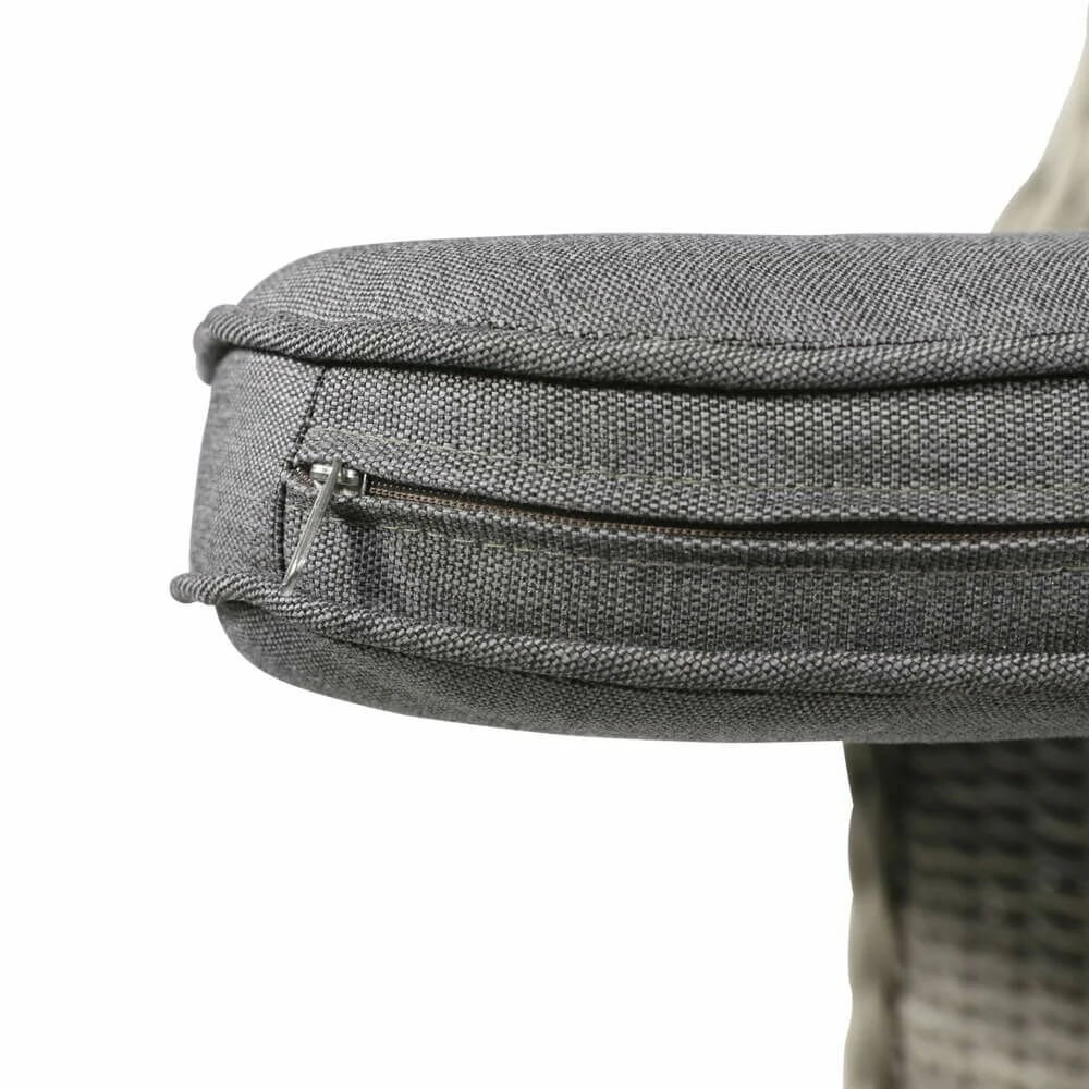 Dieser Gartensessel wird unter ständiger Qualitätskontrolle aus Polyrattan und Aluminium gefertigt. Das Outdoor-Möbelstück ist beständig gegenüber Witterung und kann ganzjährig im Außenbereich eingesetzt werden. Die dicken Auflagen werden aus Polyester mit einem Schaumstoff-Baumwoll-Inlay gefertigt. Zur Reinigung sind Wasser und ein Schwamm ausreichend. Von säurehaltigen Reinigungsmittel wird abgeraten. Diese können die Oberfläche schädigen und zu einem Verlust der Wetterbeständigkeit führen.