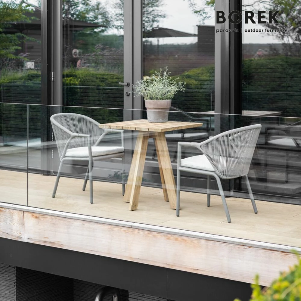 Die Gartenmöbel des Herstellers Borek zeichnen sich durch eine dauerhafte Stabilität und ein modernes Design aus. Eine hochwertige Aluminiumlegierung, die bei 180 Grad pulverbeschichtet wurde, bildet das Gestell der Möbel. Der Gartensessel ist frost- und hitzbeständig sowie pflegeleicht. Neben Gartenstühlen bietet der Hersteller auch Loungemöbel, Gartenliegen und Sonnenschirme an, die Sie ebenfalls in unserem Shop online bestellen können.
