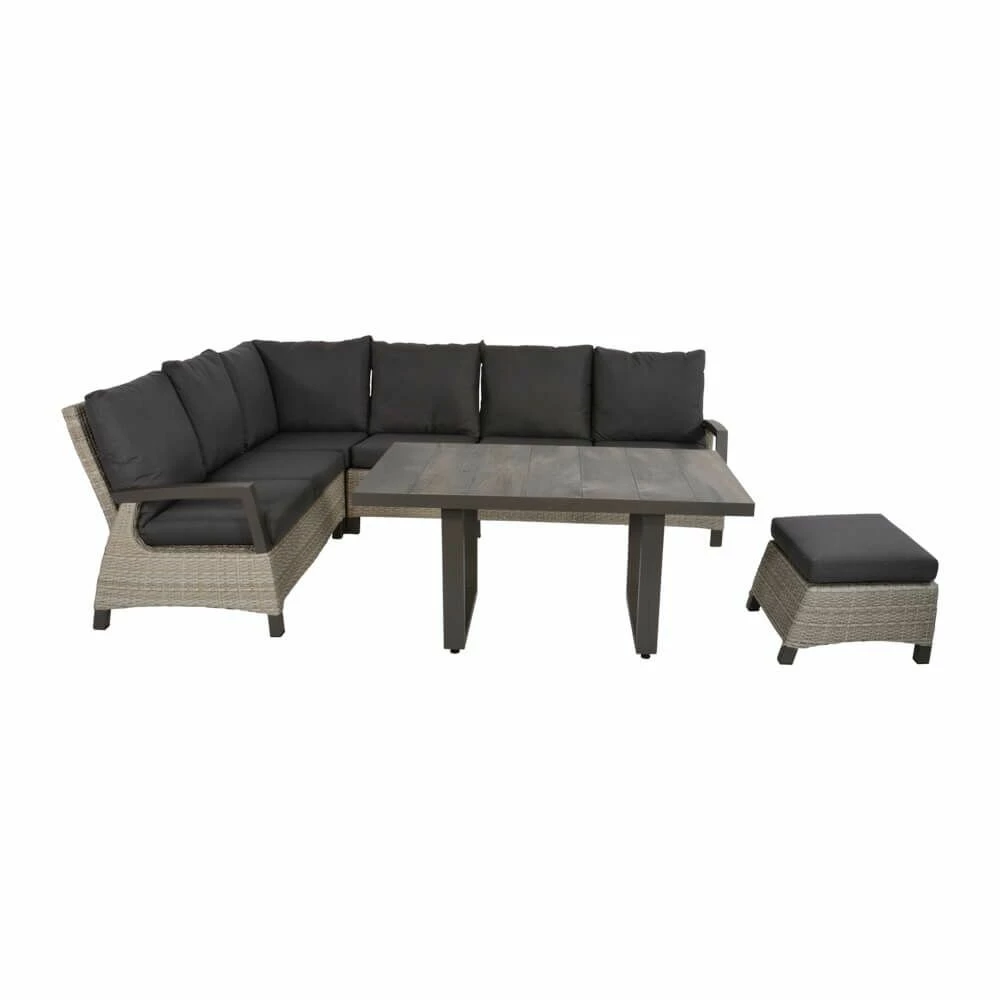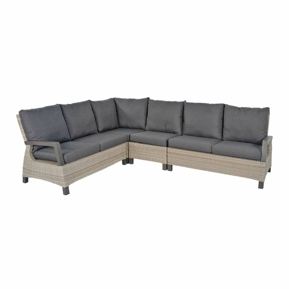 Dieses Gartensofa wird unter ständiger Qualitätskontrolle aus Aluminium gefertigt. Das Gestell wird mit einem Polyethylen-Geflecht in Rattanoptik überzogen. Die Sitzhöhe beträgt 33 cm ohne Auflagen, die Armlehnenhöhe 60 cm. Das Outdoor-Möbelstück ist beständig gegenüber Witterung und kann ganzjährig im Außenbereich eingesetzt werden. Die 10 cm dicken Auflagen werden aus Olefin mit einem Schaumstoff-Baumwoll-Inlay gefertigt. Die Dichte des Materials liegt bei 190 gr/m^2. Zur Reinigung sind Wasser und ein Schwamm ausreichend. Von säurehaltigen Reinigungsmittel wird abgeraten. Diese können die Oberfläche schädigen und zu einem Verlust der Wetterbeständigkeit führen.